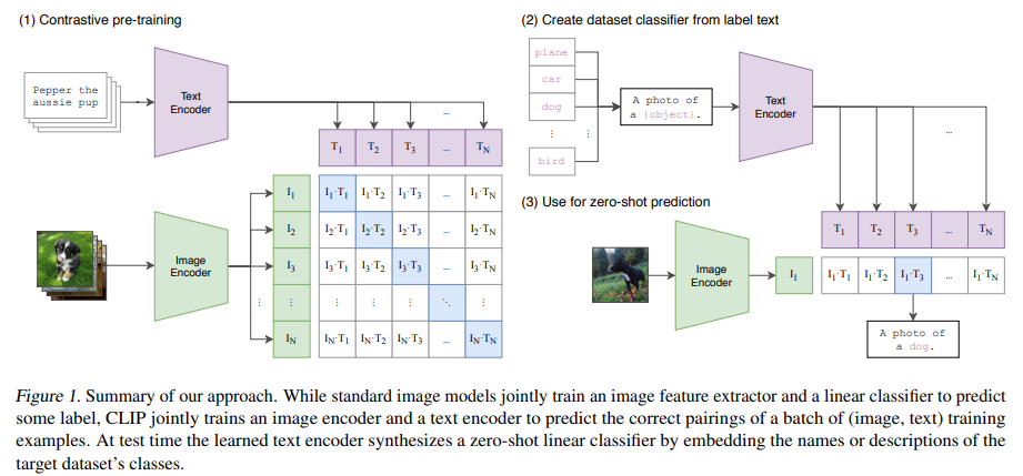 - 인터넷에서 수집된 4억 개의 (이미지, 텍스트) 쌍으로 구성된 데이터셋을 기반으로 어떤 캡션이 어떤 이미지에 속하는지 예측하는 간단한 사전 학습 작업이 SOTA 이미지 표현을 처음부터 학습하는 효율적