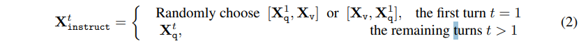 - 각 image $X_v$ 에 대해 multi-turn conversation data $(X^1_q , X^1_a , · · · , X^T_q , X^T_a )$ 확보